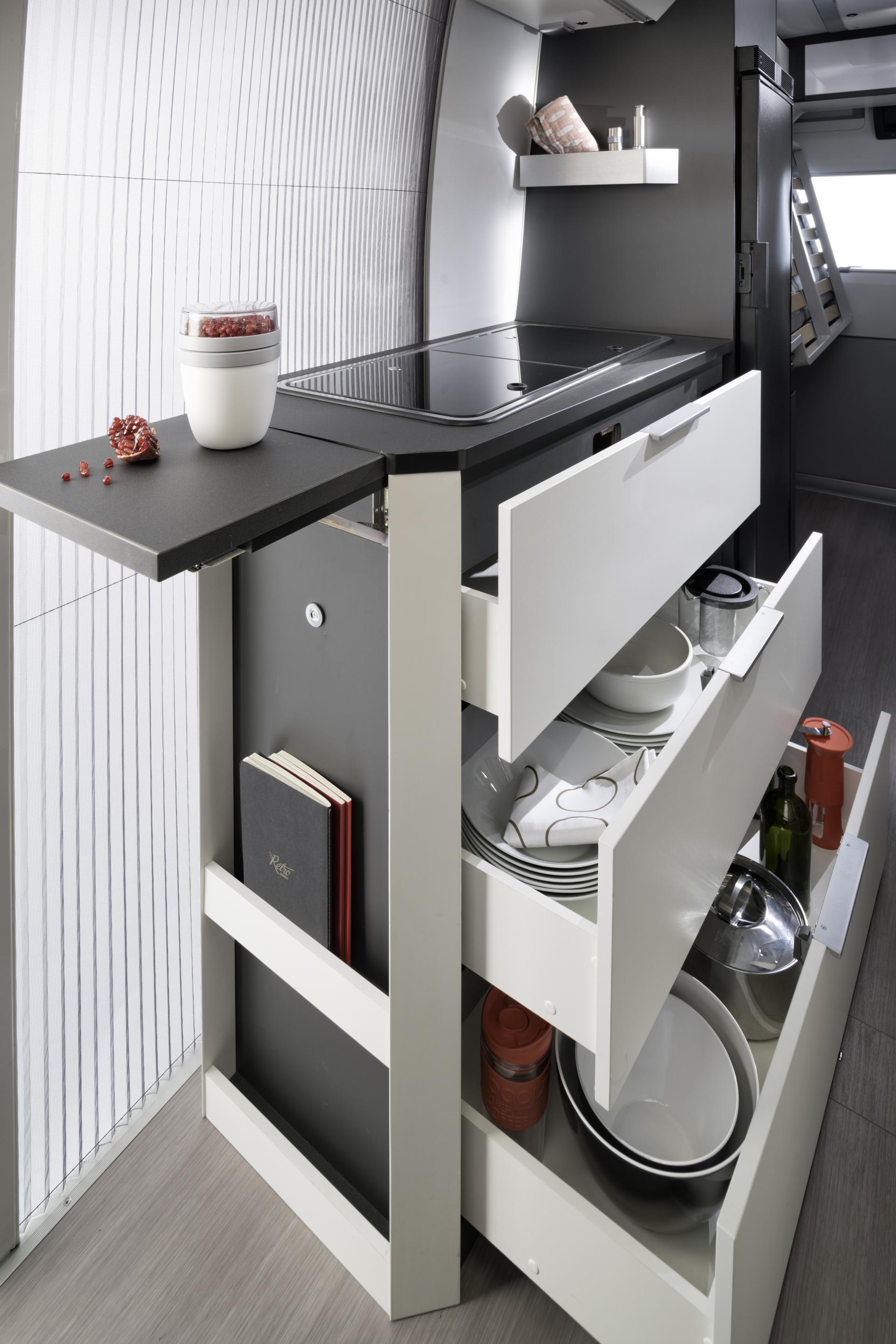Ingenious bathroom solutions make you feel like in a full-size motorhome, while a spacious kitchen and living area leave nothing to more to desire.