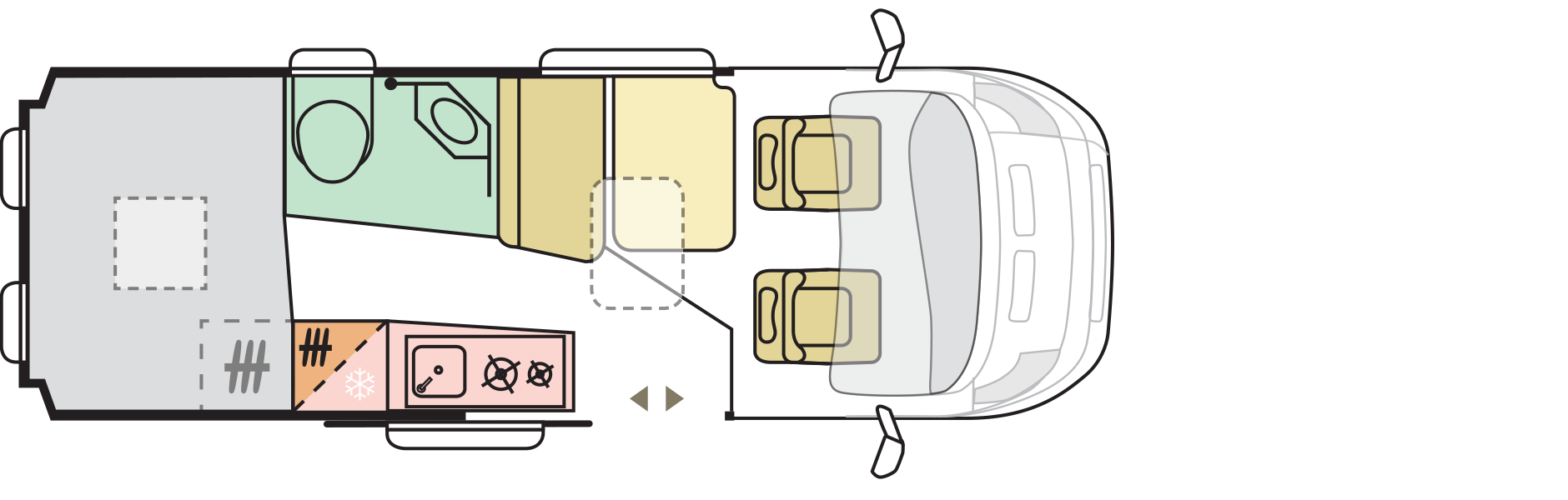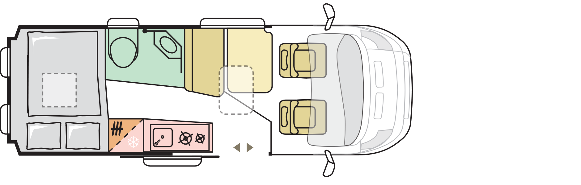 This camper is a perfect fit for two persons, who wants exceptional comfort without decreasing the mobility.