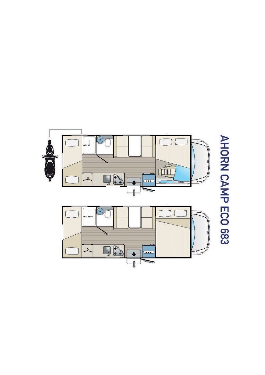 The comfort and spaciousness are even more enhanced by the alcove that houses a big double bed with plenty of headroom at bedtime. To reach the bed there are ladders that can be removed during the day. As you can tell from the above, Ahorn ECO 683 is all about enjoyment and convenience working together towards your desired holiday experience.